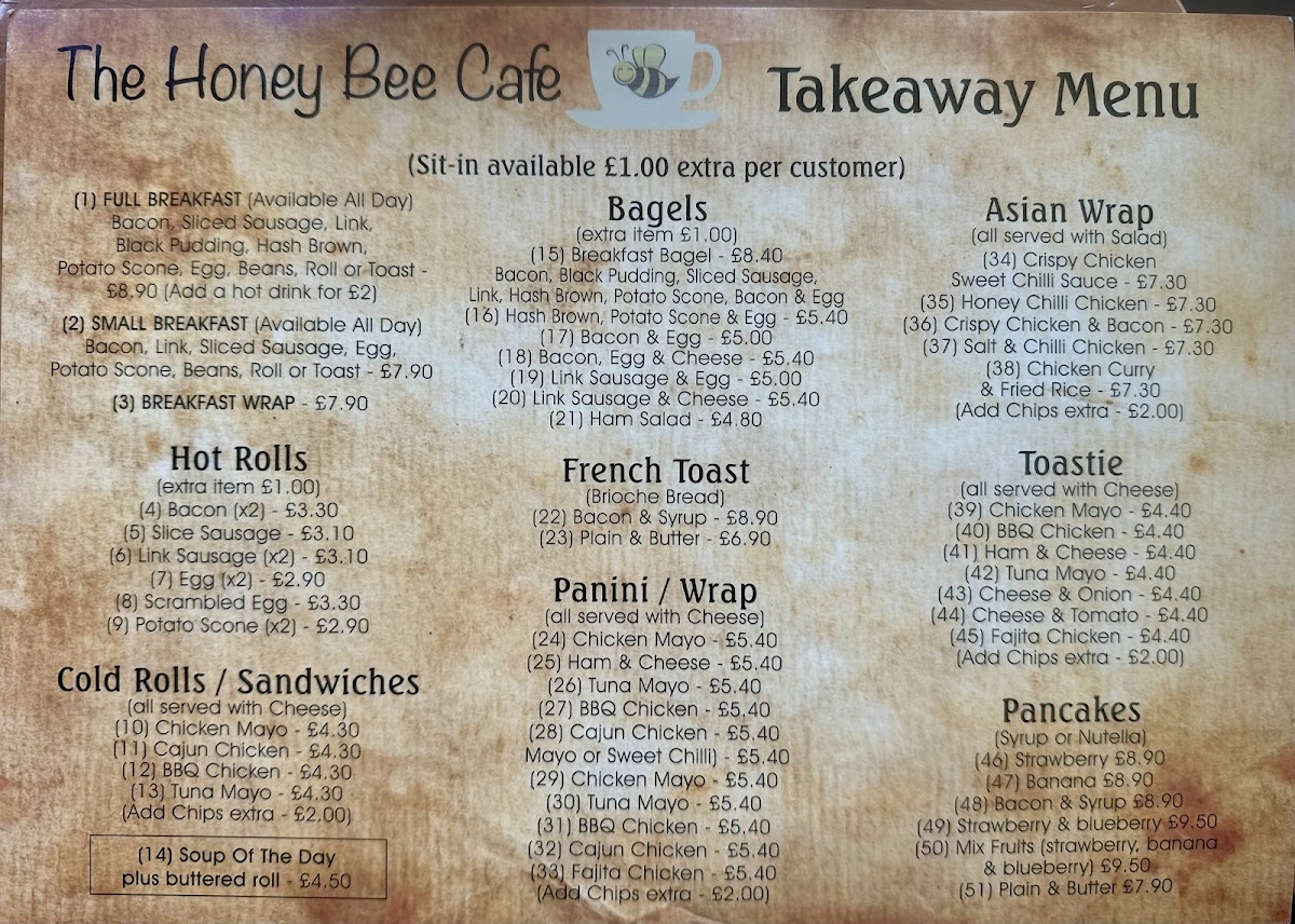 Nestled along 40 St Germain St in the charming village of Catrine, The Honey Bee Cafe stands as a delightful beacon for anyone seeking a cozy spot filled with promise and flavor. This inviting café is an essential stop for those exploring the picturesque River Ayr Way or locals simply looking to indulge in quality comfort food.